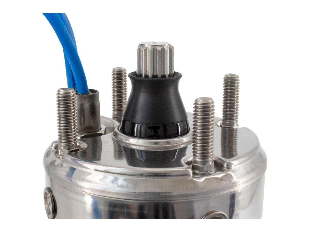 - Plášť čerpadla, spodní a horní tělěso, spojka motoru a hřídel z nerezové oceli.