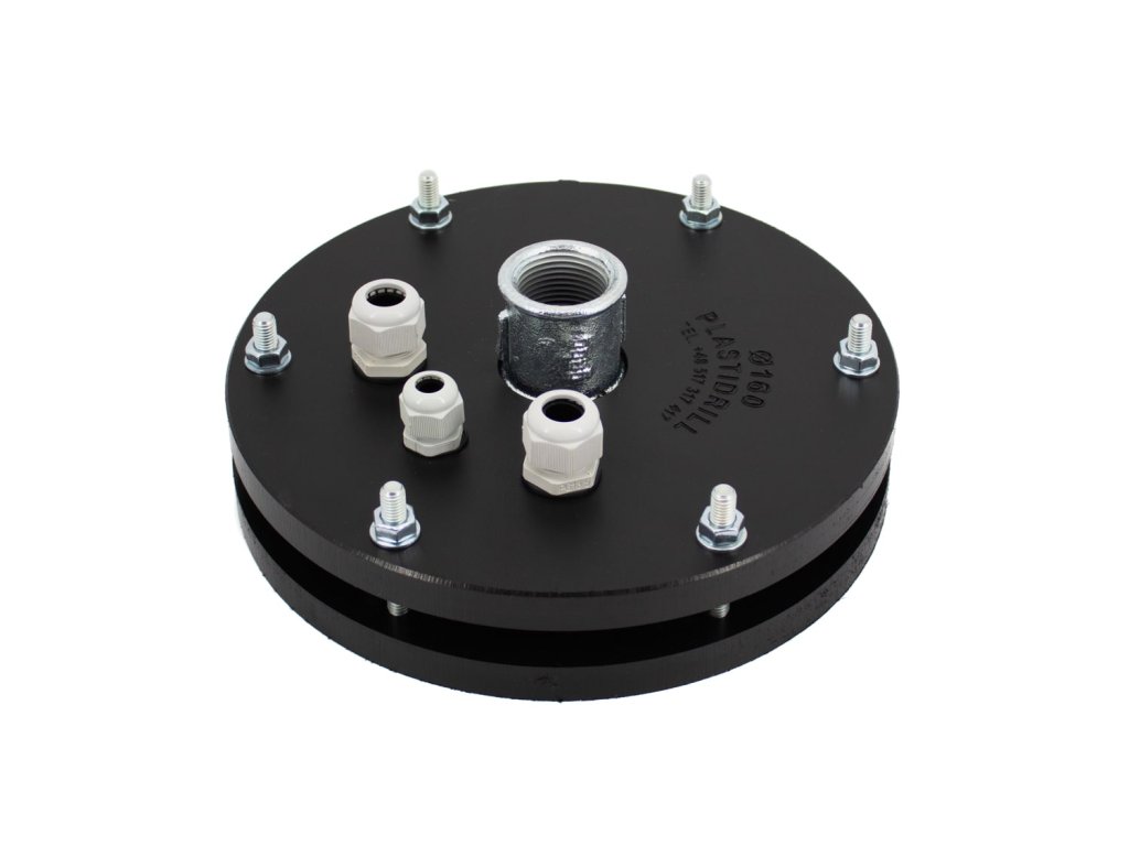 Instalační hlavice na vrt 160mm, 1", s odvzdušněním a vývodkou pro sondy (PG9)