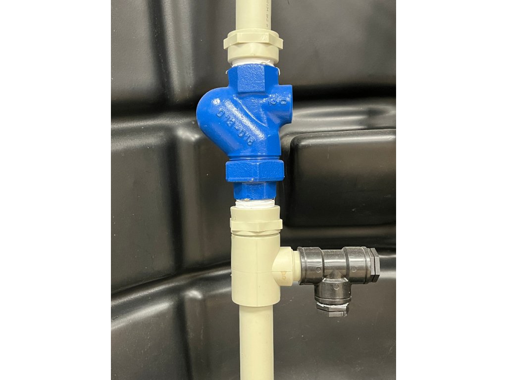 Na výtlaku z čerpadla je plastový T kus a v něm pojistný ventil do kalů.